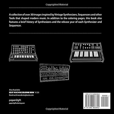 Synthesizer Coloring Book •A Must Have Studio Companion Coloring Book •A Collection of Over 30 Images Inspired By Vintage Analog Synthesizers, Sequencers and Other Tools That Shaped Modern Music. •Also Available Beat Machine Coloring Book (http://www.beatmachinecoloringbook.com) •Unique Holiday Gift For Synthesizer Lovers, Music Producers and Vintage Analog Gear Enthusiasts.